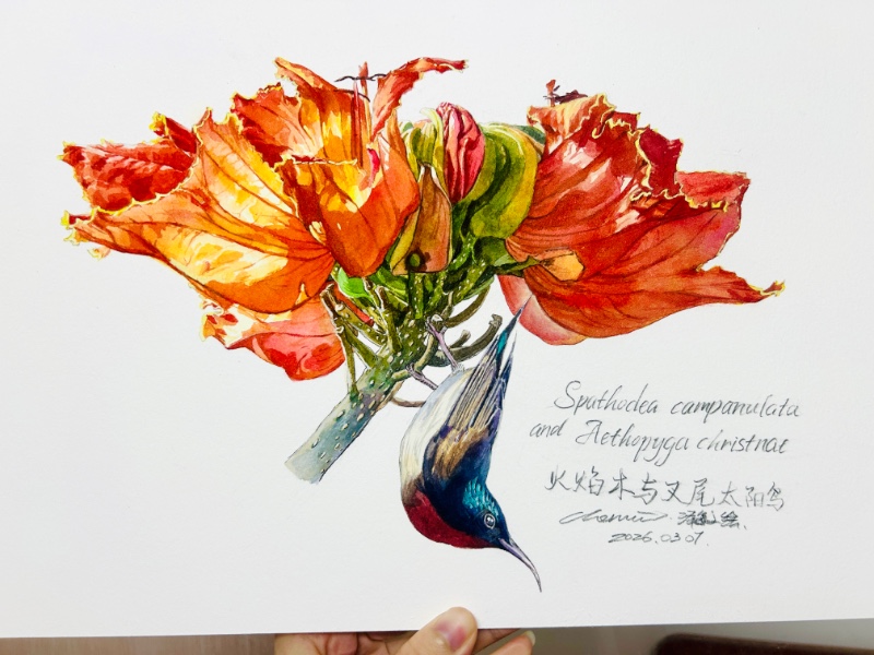 火焰木与叉尾太阳鸟