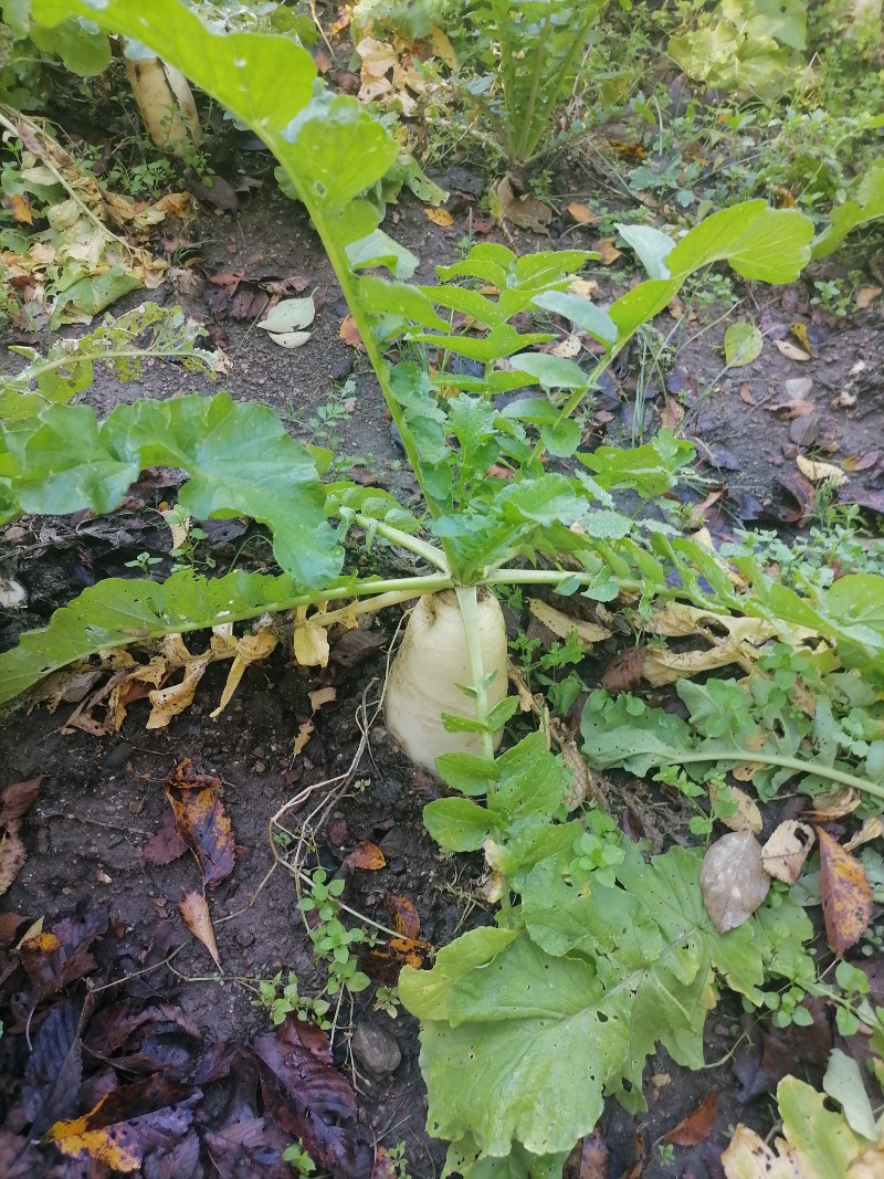 - 植物特征:根部呈白色,膨大粗壮;叶片绿色,形状多为大头羽状裂叶,叶片上有明显的孔洞,可能是被虫害所致。