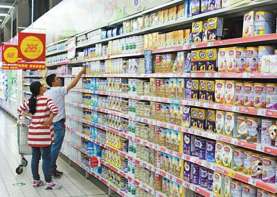 江苏南京市民在超市乳制品专区选购婴幼儿奶粉。