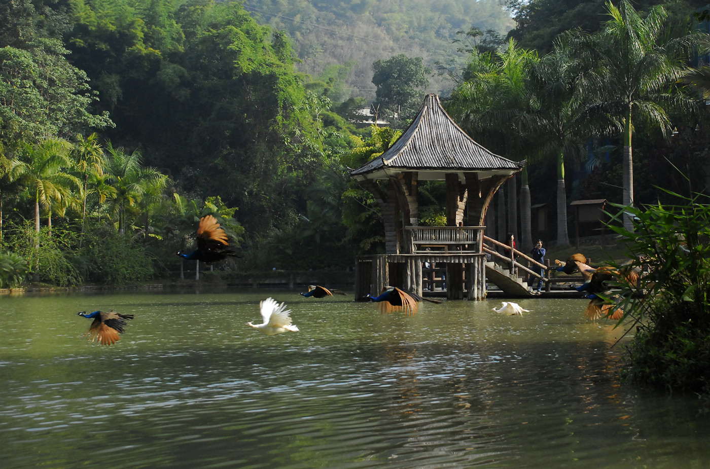 西双版纳原始森林公园位于云南省西双版纳州景洪市,距离景洪市区8km的菜秧河畔,南跨南板河,北面以菜秧河为界,自1999年5月29日建成并对外试营业以来,便以她的神奇、美丽吸引着众多海内外游客和科学工作者。2001年5月,森林公园被国家旅游局景区(点)评定委员会评定为国家AAAA景区;2002年7月,通过ISO9001国际质量管理体系和ISO14001国际环境管理体系认证。2005年12月被国家林业局评定为国家级森林公园。2009年8月被美景中国网评为“中国最美的十大森林公园”,排名第二。2010年8月被评为“省级文明景区”。2011年1月获得“全国低碳旅游实验区”的称号。公园占地面积26310亩,园内森林覆盖率为98.6%,是目前北回归线以南保存最完好的一片原始森林,它以无法替代和复制的自然优势融汇了原始森林神奇的自然风光和浓郁的民俗风情,集中突出体现了“热带沟谷雨林”、“以孔雀文化为主的野生动物展示”、“以哈尼族—爱尼人为主的民俗风情展示”三大主题特色,同时配备有按四星级打造集客房、餐饮、会务、娱乐为一体的孔雀山庄度假村。
