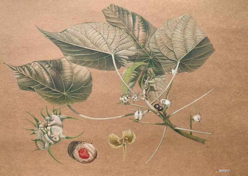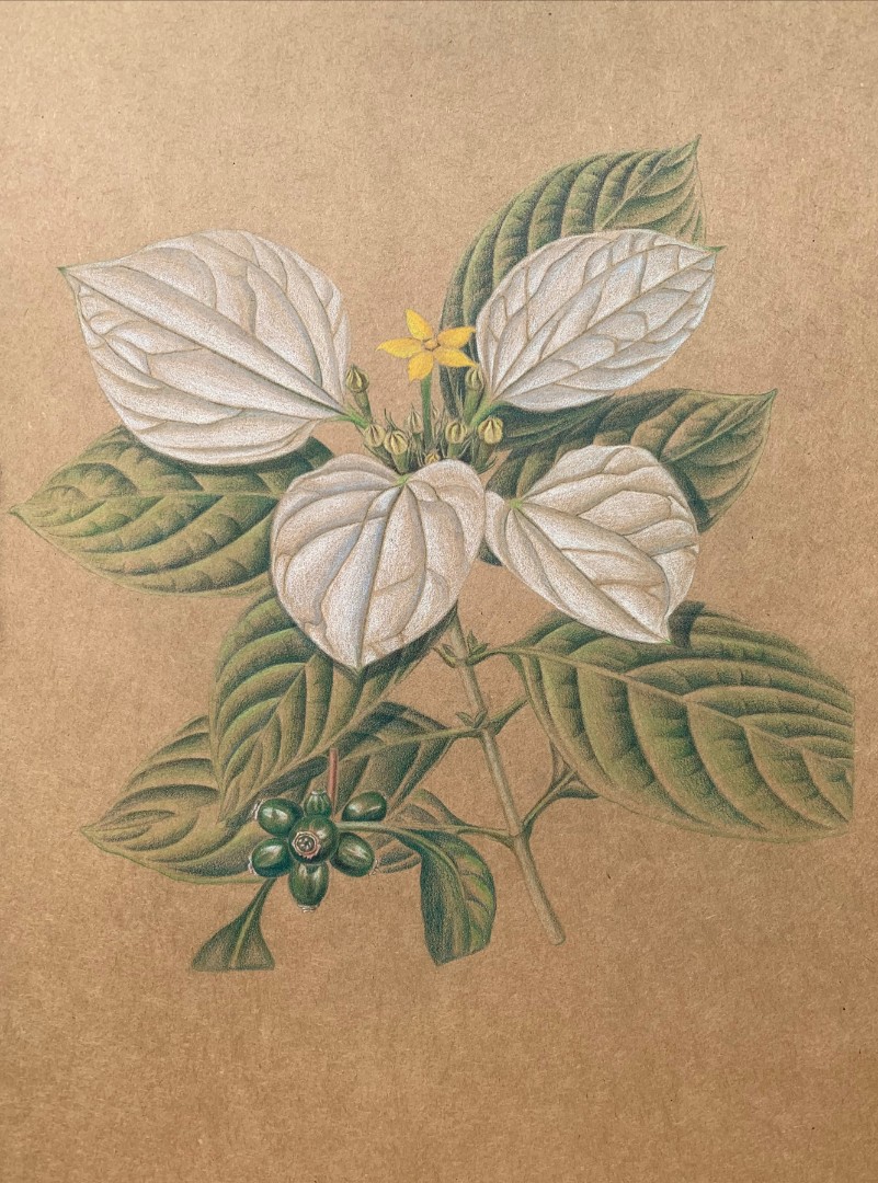 小玉叶金花 彩铅 A3棕色牛卡纸